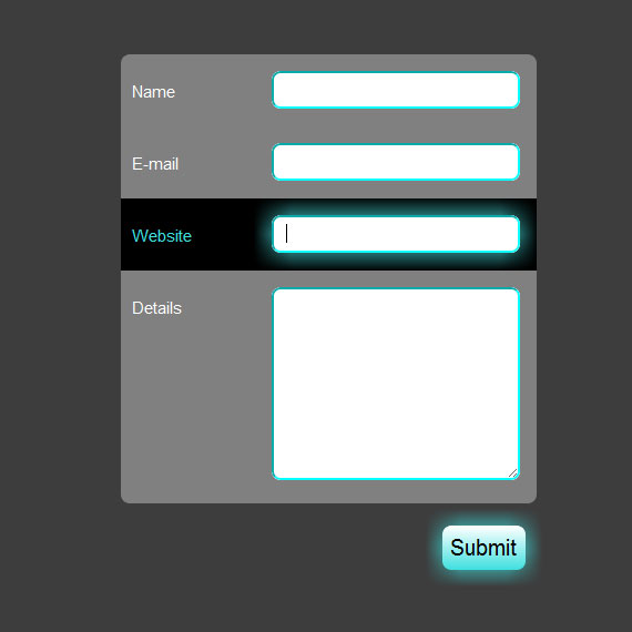 The last piece of CSS code below will add the glowing effect to the neon edges of your input boxes. This part (@-webkit-keyframes) by the way, only works in browsers using the Webkit layout engine like Chrome and Safari:
